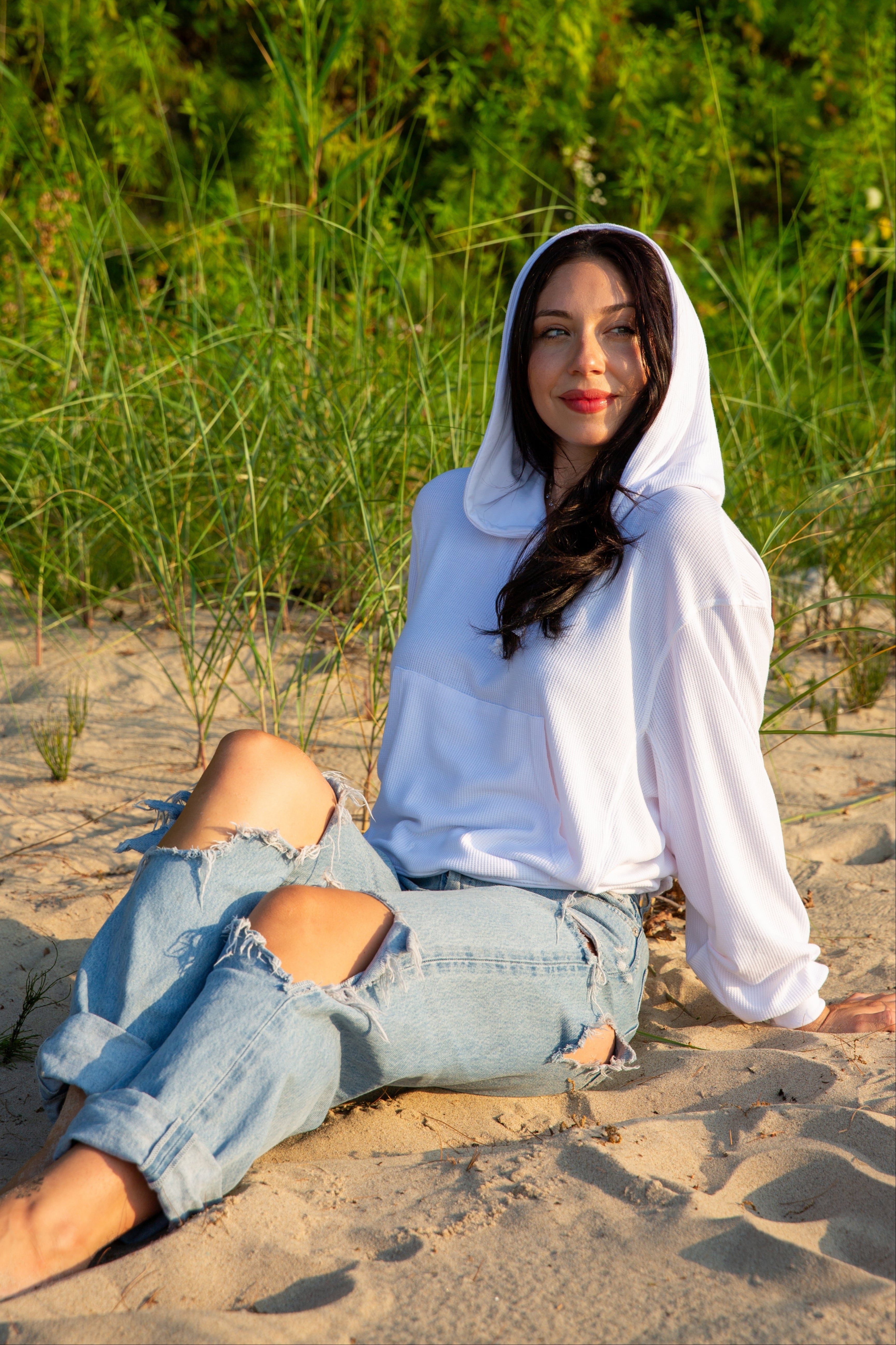 Shot at our home beach in Michigan, the same spot where we did our photoshoots back in the ’90s. Sun, sand, and a whole lot of nostalgia — just easy styles in a place that feels like home.