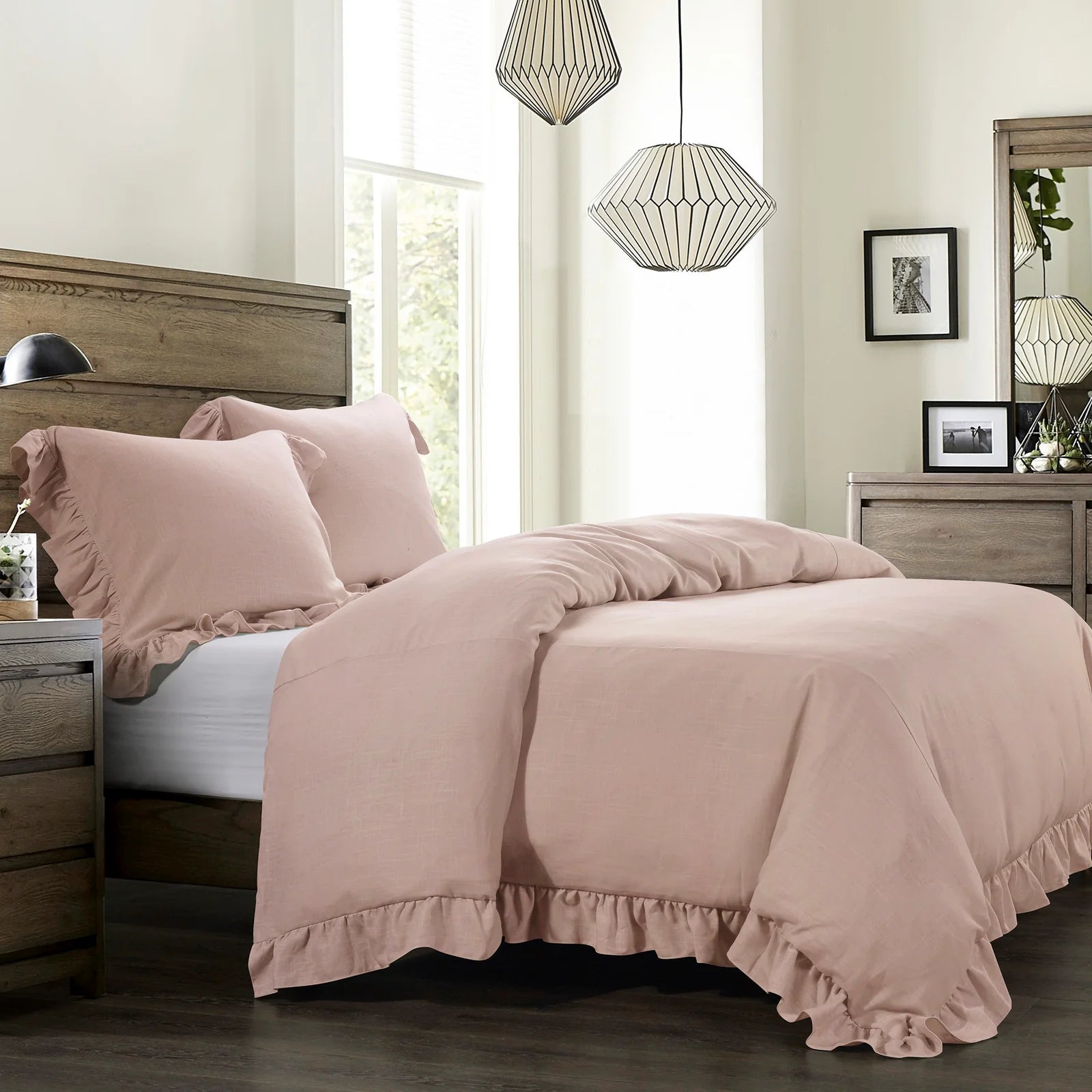 With flowing ruffled edges and a classic neutral ensemble, the Lily Washed Linen Bedding Set inspires an air of romance in your home. These delicate features bring a graceful look to our super-soft washed linen blend, which sports a durable texture that's easy to care for and wrinkle-resistant.