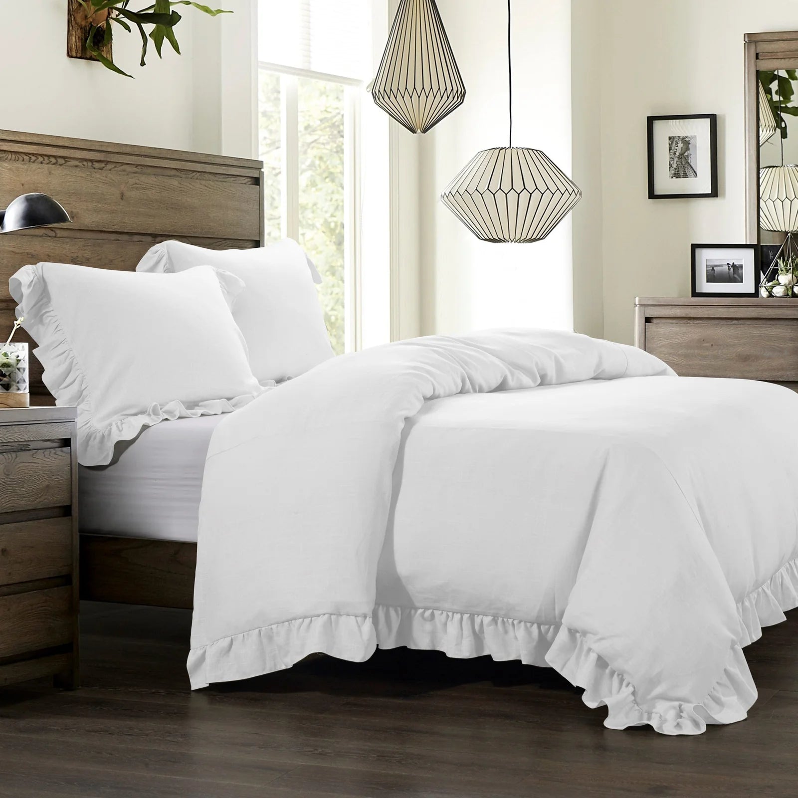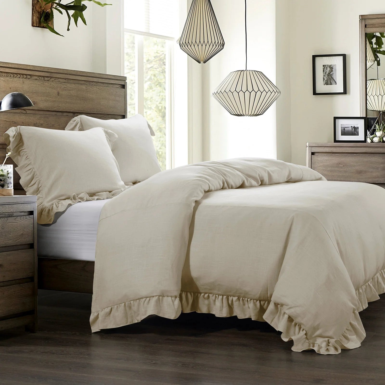 With flowing ruffled edges and a classic neutral ensemble, the Lily Washed Linen Bedding Set inspires an air of romance in your home. These delicate features bring a graceful look to our super-soft washed linen blend, which sports a durable texture that's easy to care for and wrinkle-resistant.
