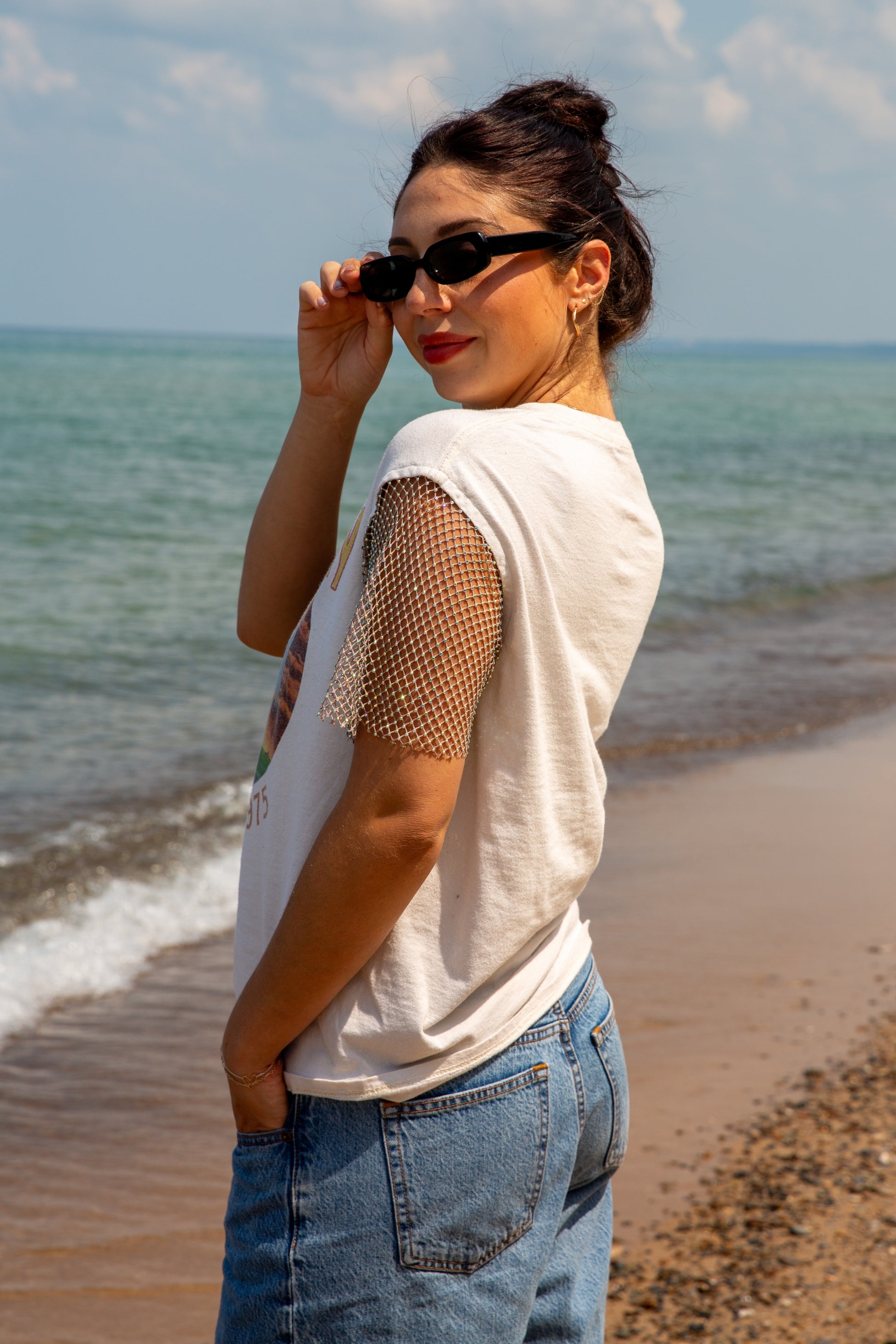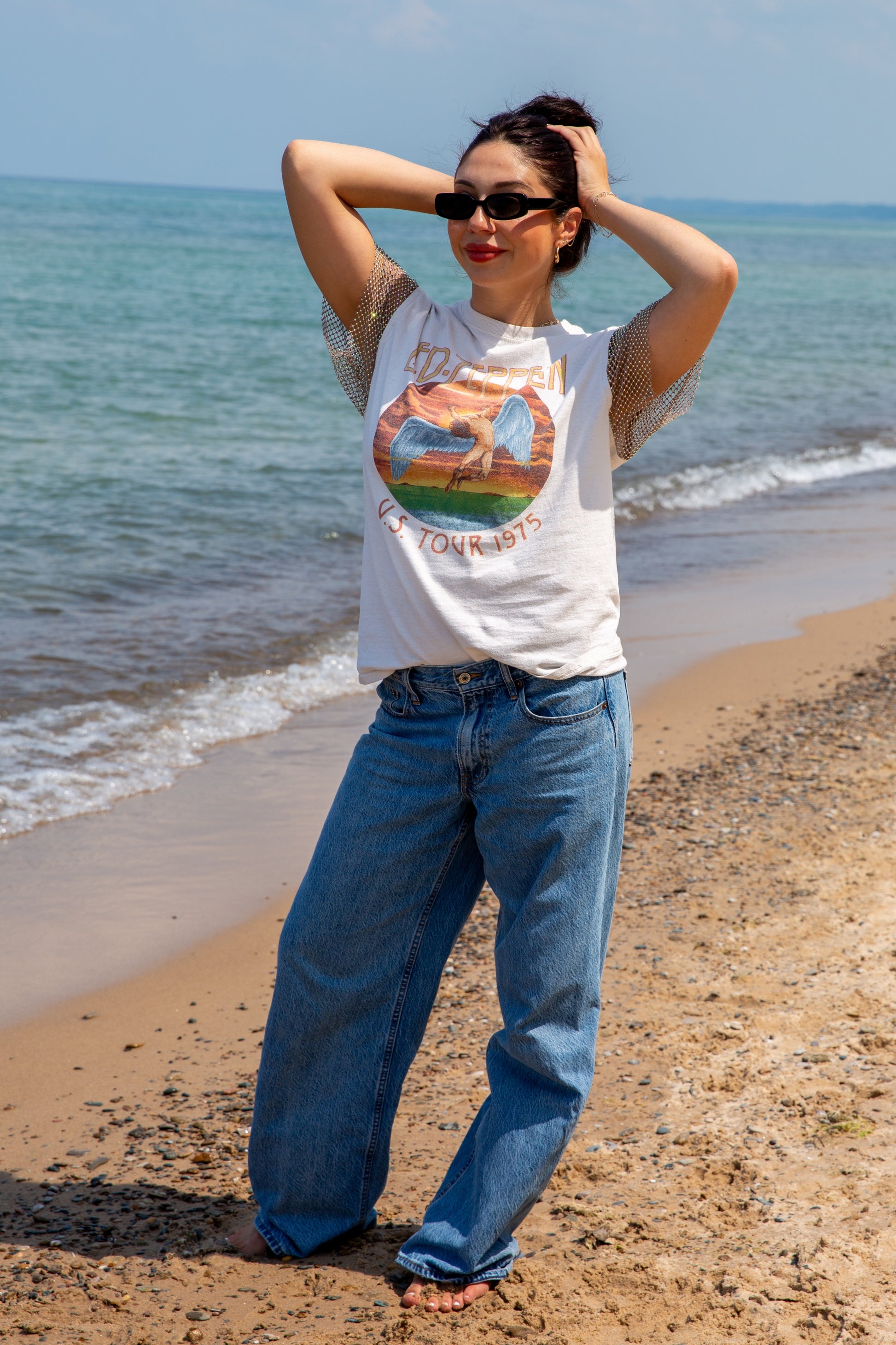 Led Zeppelin band tee with reworked crystal sleeves
